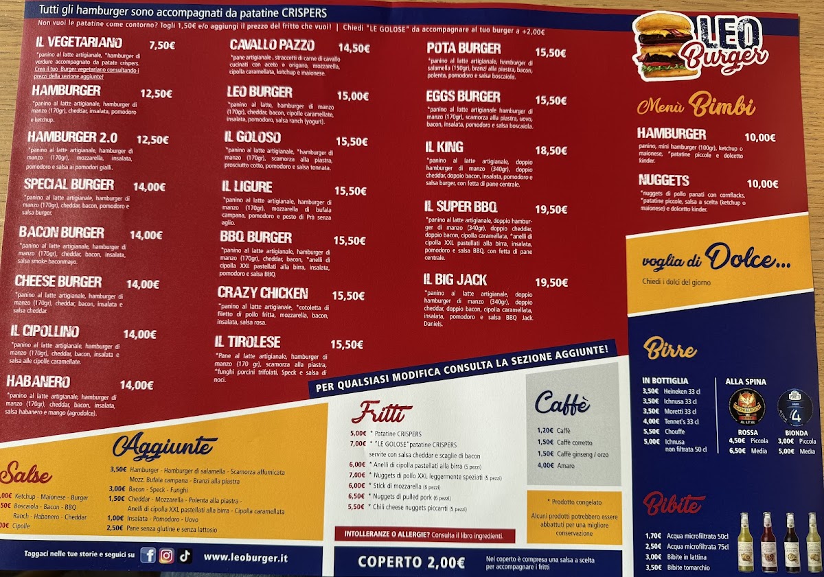 Welcome to LEO Burger BERGAMO, an American-style hamburger haven located in the charming Zanica. This quaint restaurant promises a culinary adventure with its gourmet burgers and fresh, high-quality ingredients that truly tantalize the taste buds.
